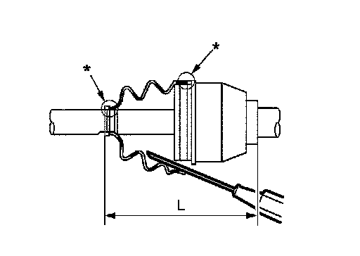 10.To prevent the deformation of the boot, adjust the boot installation length (L) to the specified value shown below by inserting the suitable tool into inside of the boot from the large diameter side of boot and discharging the inside air.