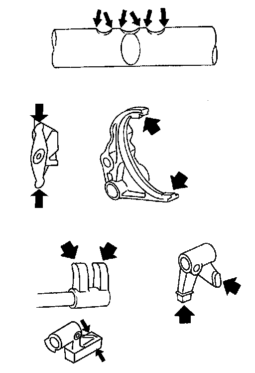- Check the contact surface of each forks, rods, levers, and brackets for excessive wear, uneven wear, bend, and damage. Replace if necessary.