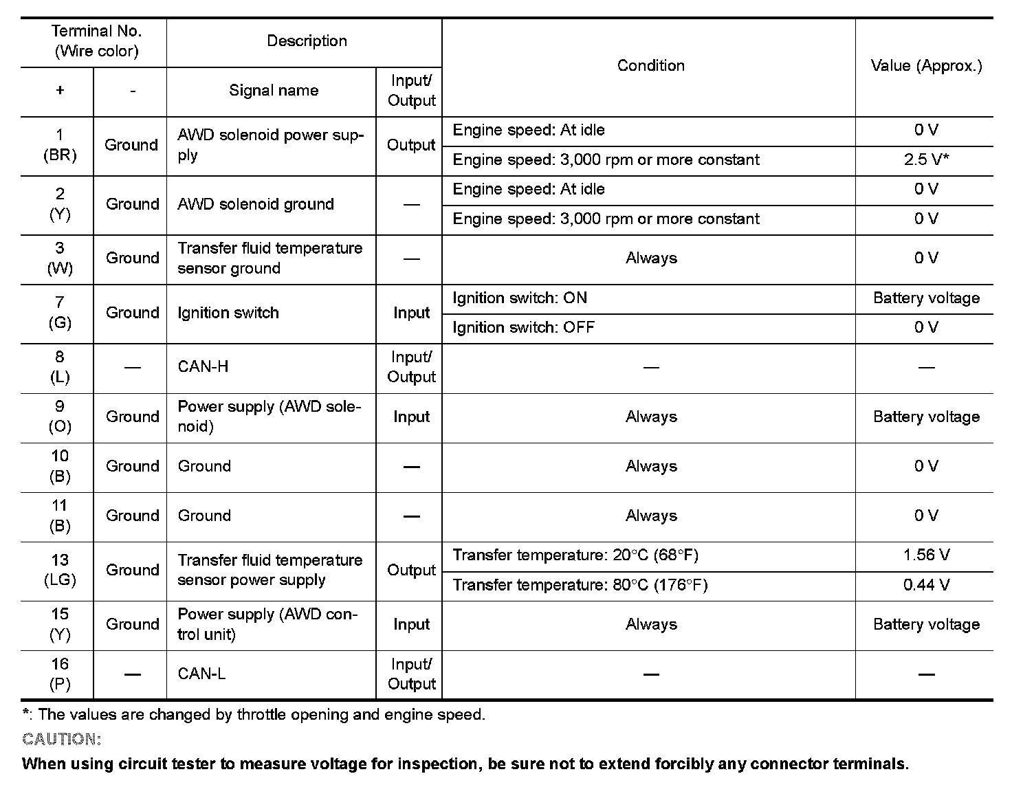 Pinout Values and Diagnostic Parameters