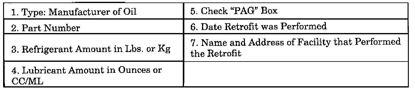 Do not remove, cover or render unreadable on the existing R-12 caution label. However, cross out the R-12 refrigerant charge amount on the existing label with a permanent (preferably black) marker.