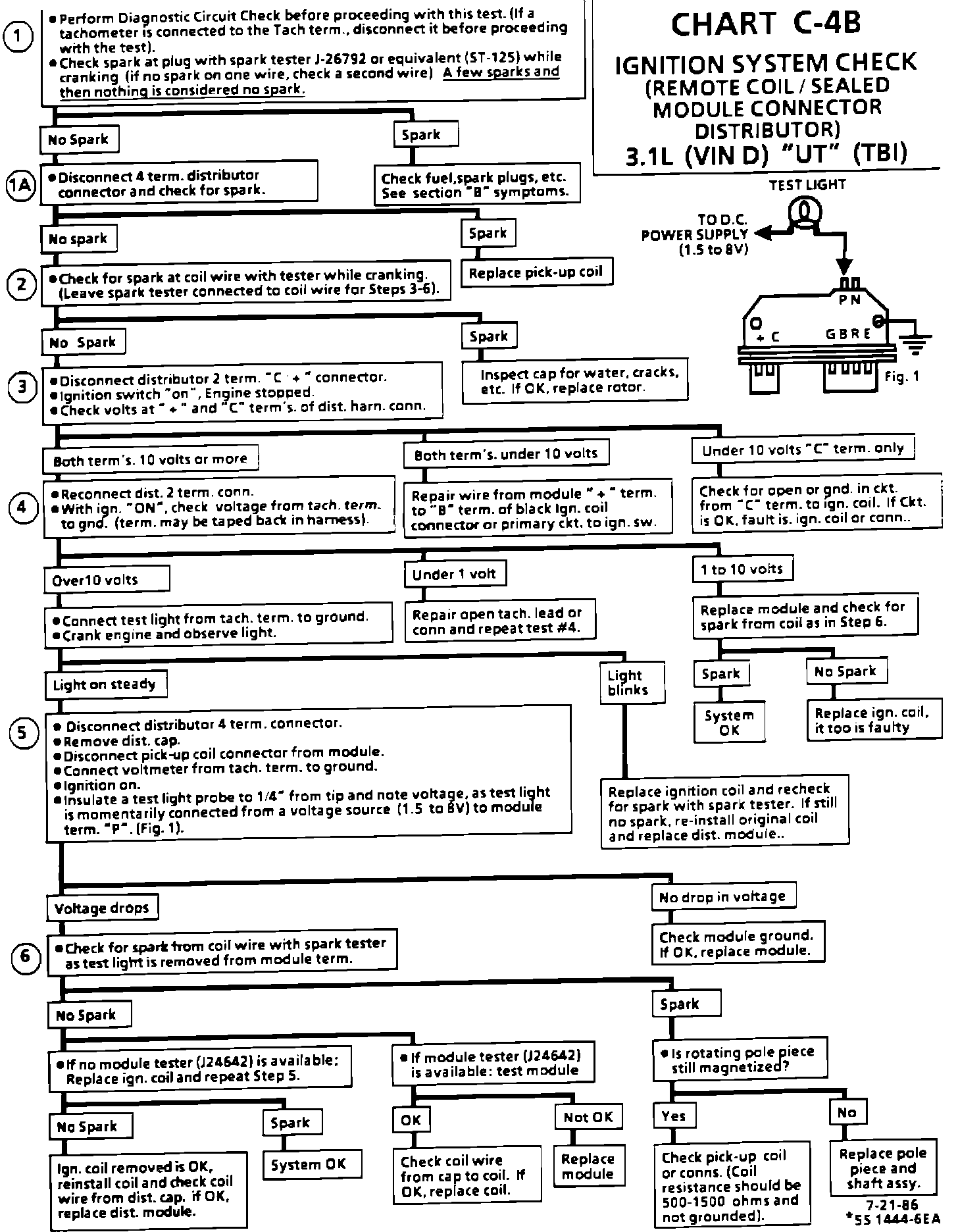 Chart C-4B - Ignition System Check (Remote Coil/Sealed Module Conn. Dist.):