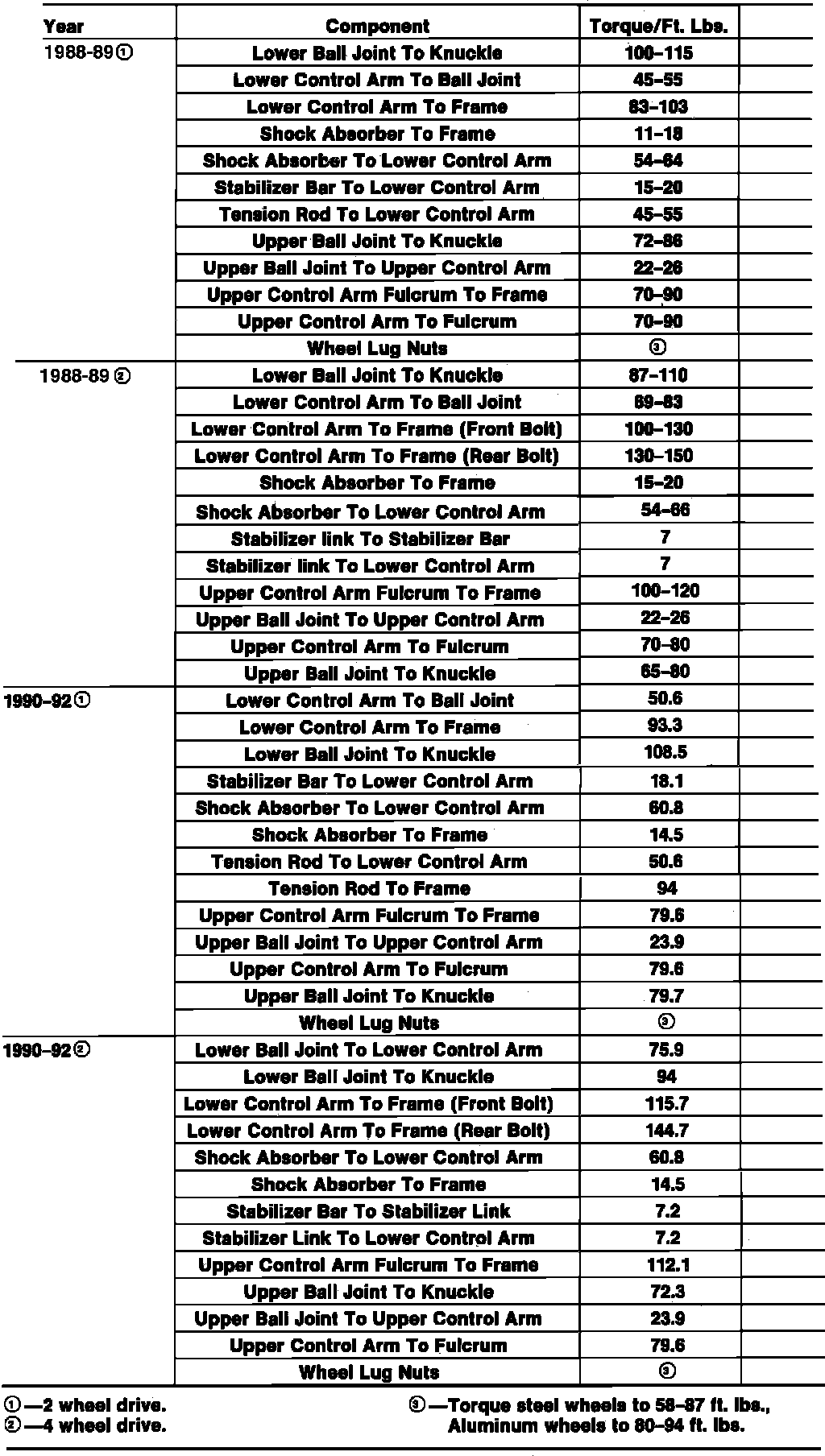 Tightening Specifications: