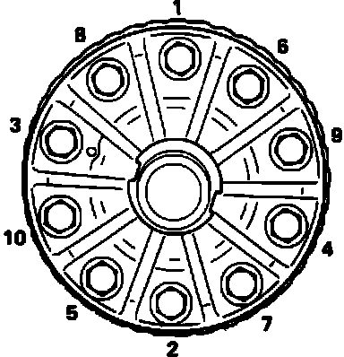 Fig. 24 Ring gear bolts tightening sequence. Rear differentials: