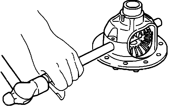 5. Remove ring gear bolts and separate ring gear from case. Use care when removing ring gear to avoid damaging differential case or ring gear. Do not force a chisel or other tools between joining surfaces.