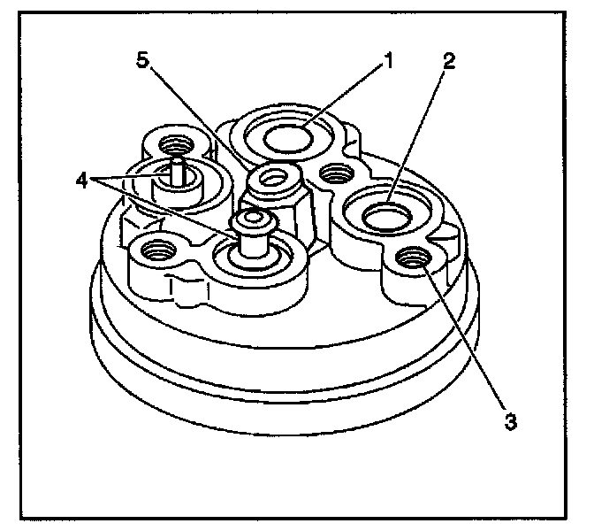 2. Lubricate the O-ring of the new pressure relief valve (5) and the O-ring assembly using new 525 viscosity refrigerant oil.