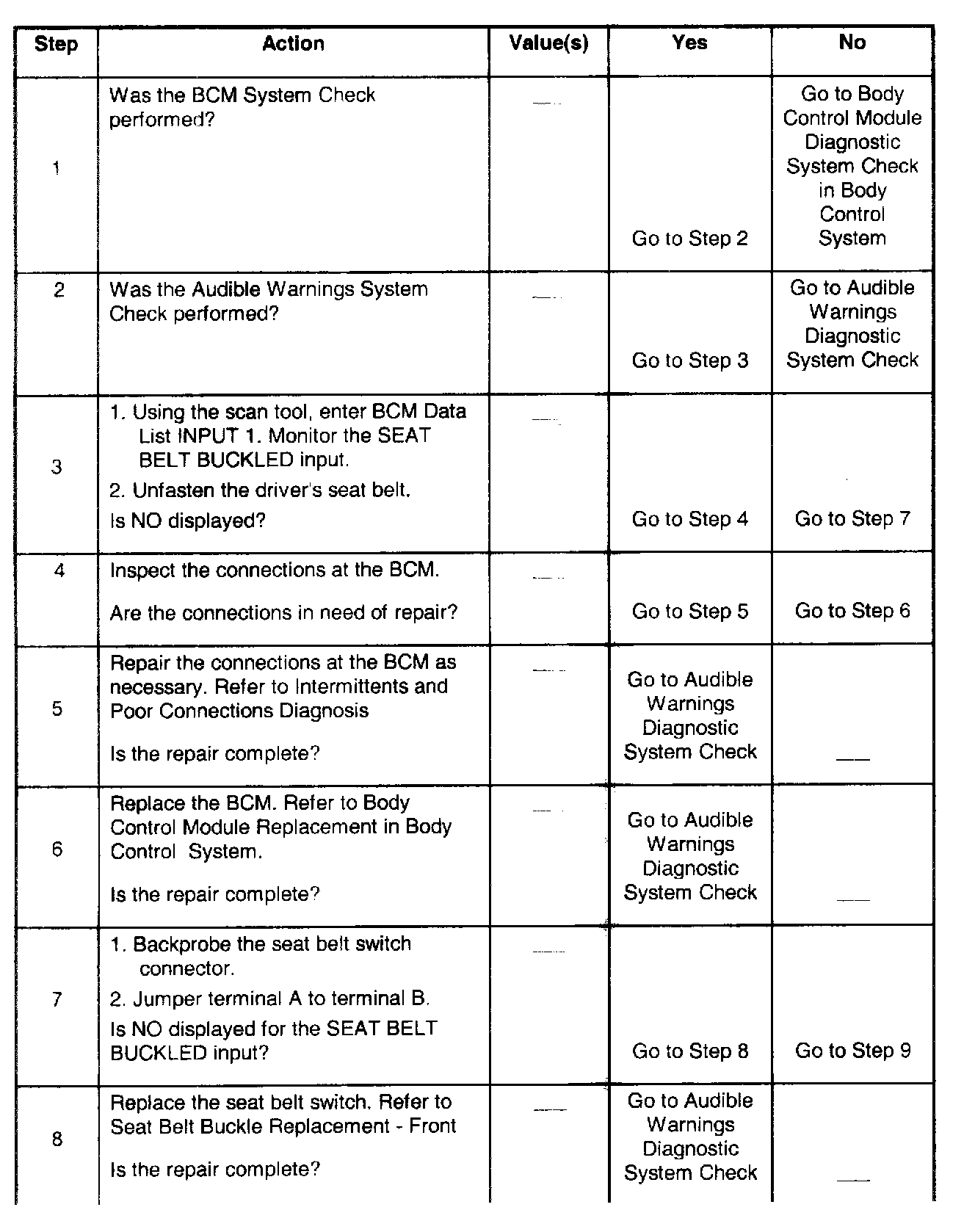 Fasten Safety Belt Chime Inoperative