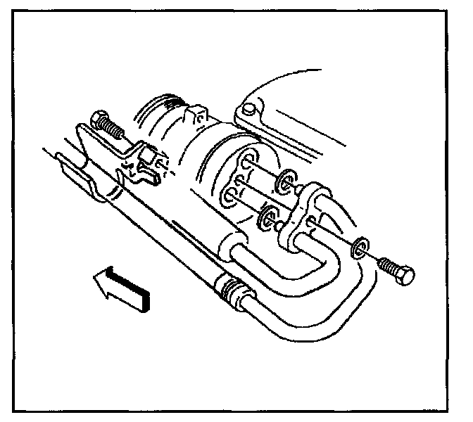 IMPORTANT: Use the correct washers. There should be a space of 1.2 mm (0.047 in) between the suction/discharge hose block and the compressor rear head.1. Clean all of the sealing surfaces with a lint-free rag in order to prevent dirt or foreign material from getting into the following sealing surface components: