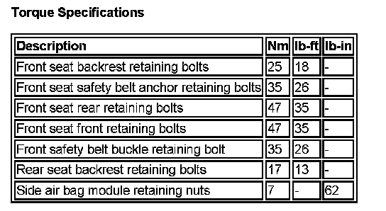 Seats: Specifications