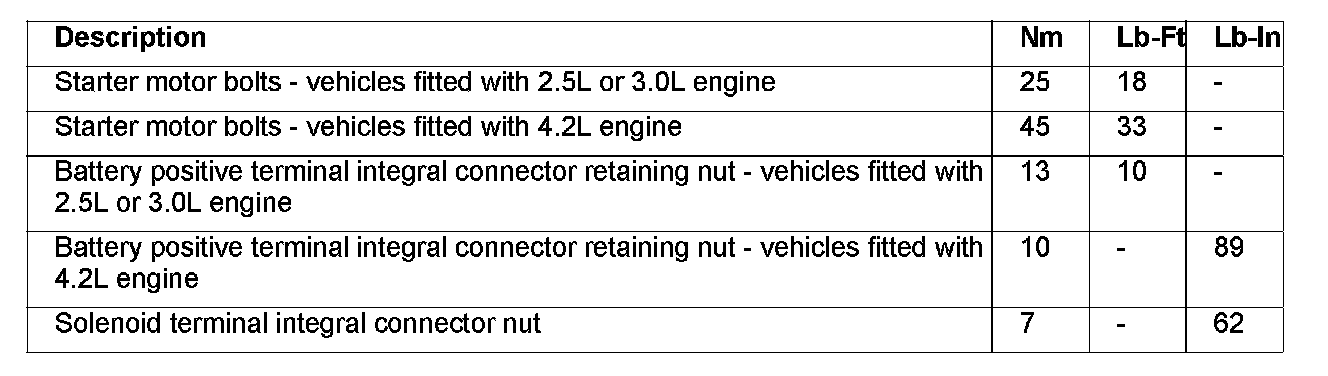 Starting System: Specifications