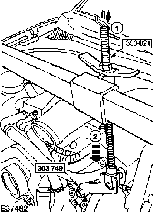 - Adjust the engine support beam (anticlockwise). Lower the engine.