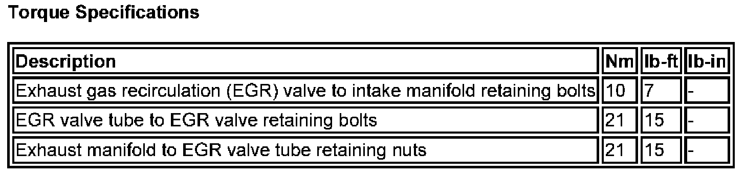 Torque Specifications: