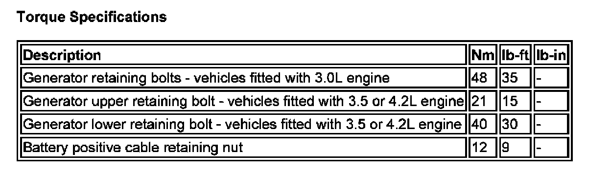 Torque Specifications: