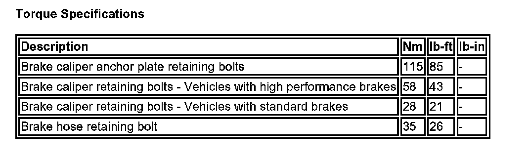 Torque Specifications