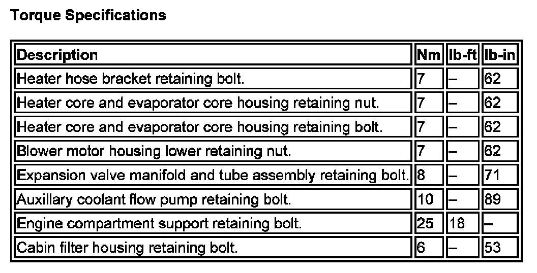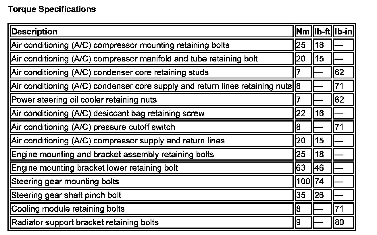 Torque Specifications: