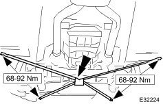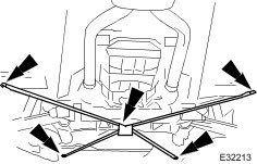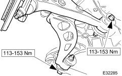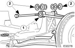 30. CAUTION: Note the position of the fulcrum bolts, as some vehicles are fitted with an eccentric bolt to the rear wishbone arm. See General Procedures section 204-01 form information.
