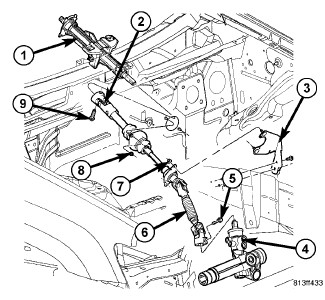 1. Remove the lower coupling (1) pinch bolt using a long extension (3) with a swivel socket (2).