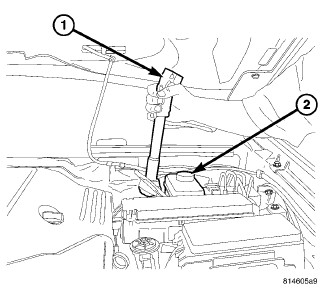 3. Remove the left inner fender well (2) to gain access to the intermediate shaft.