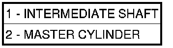 6. Remove the intermediate shaft (2) mounting nuts (1) to the bulkhead (The lower nut can be accessed from the inner fender well and the upper can be accessed from the top by the master cylinder).