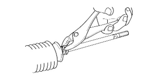 5. Remove the bellows clip. Pull the bellows out toward the tie rod.