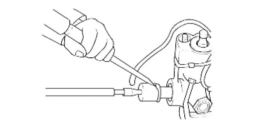 19. When the end of the circlip comes out from the notched hole of the housing rack cylinder, turn the rack stopper counter clockwise and remove the circlip.