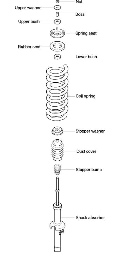 - Remove the piston rod nut until coil spring is compressed and secured.