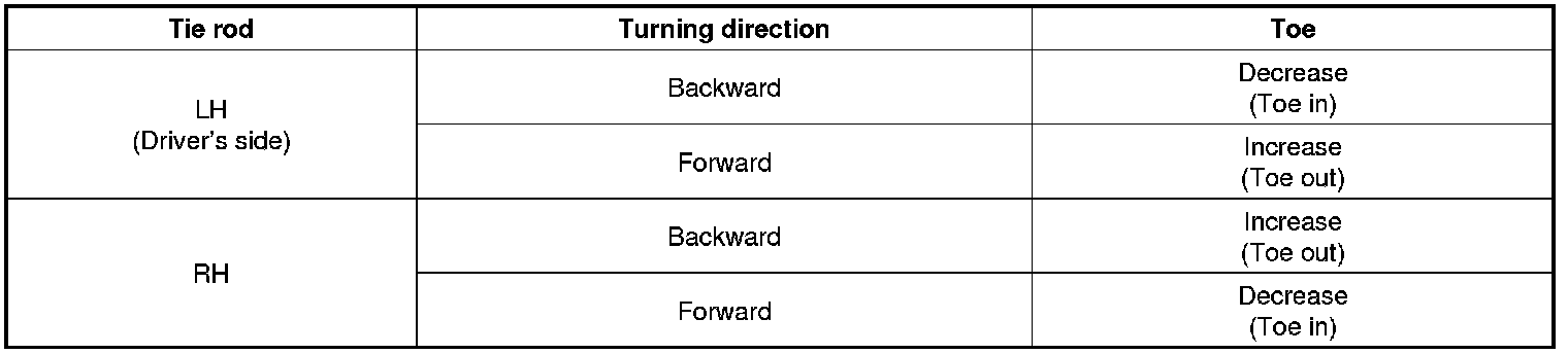 3. Adjust the toe by screwing or unscrewing the tie rod. Toe adjustment should be made by turning the right and left tie rods by the same amount.