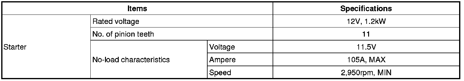 Starting System: Specifications