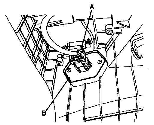 2. Disconnect the blower resistor connector (A) at the connecting part blower unit.