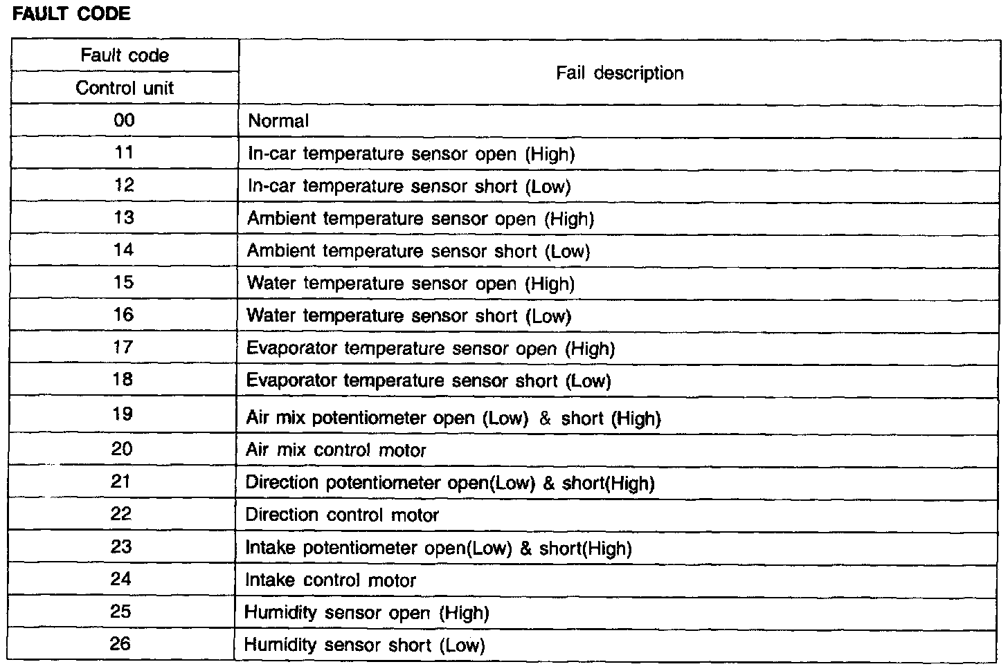 After the display panel flickers three times every 0.5 seconds, the corresponding fault code flickers on the setup temperature display panel every 0.5 seconds and will show two figures. Codes are displayed in numerical format.