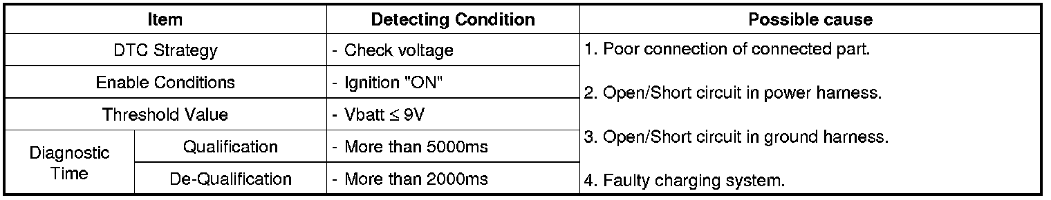 If input voltage is out of normal range, there can be malfunction in system operation. In this case, Check battery and charging system.