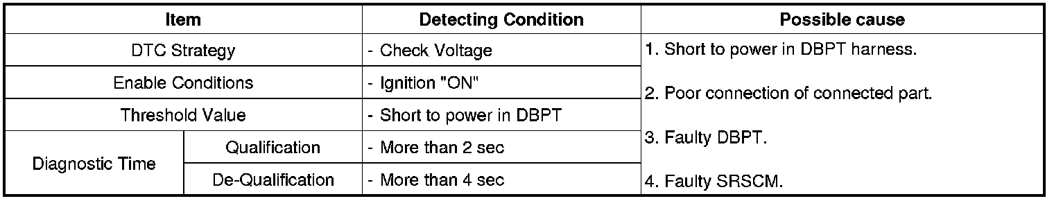 The SRSCM sets DTC B1364 if there is a short to power in DBPT harness.
