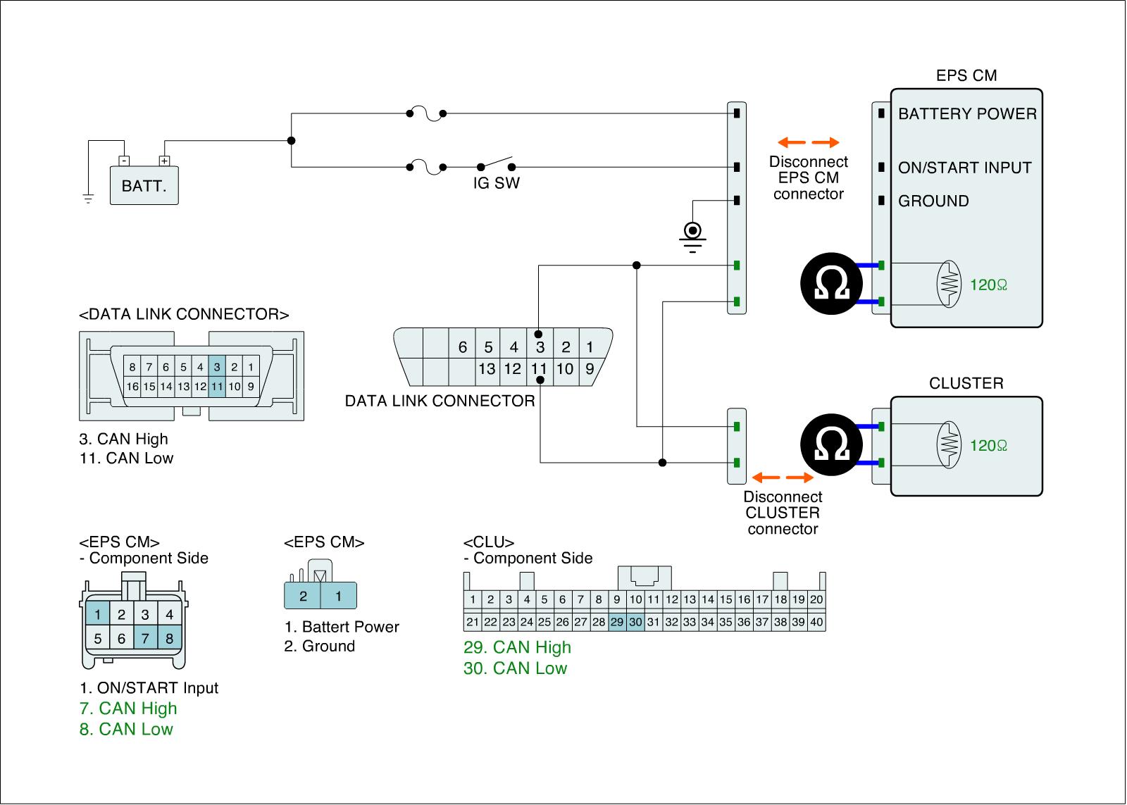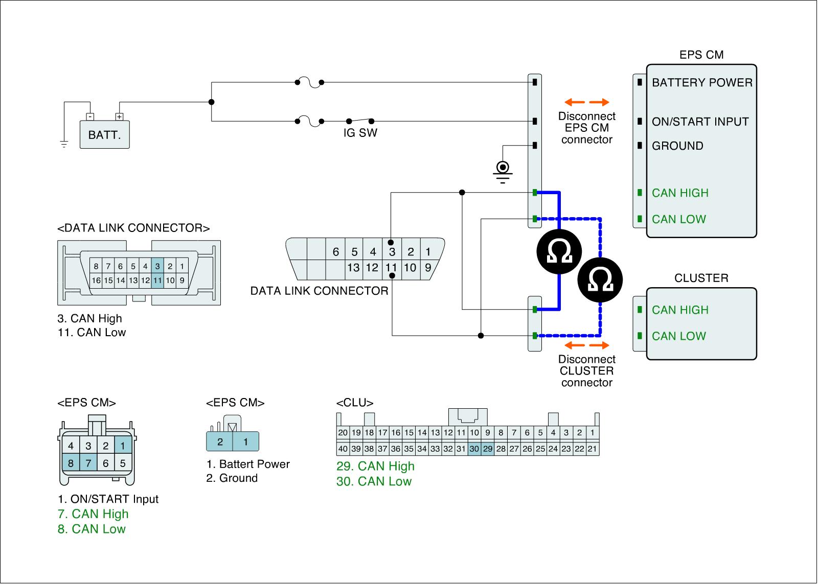 3. Measure resistance between CAN High of ESP CM and CLU.