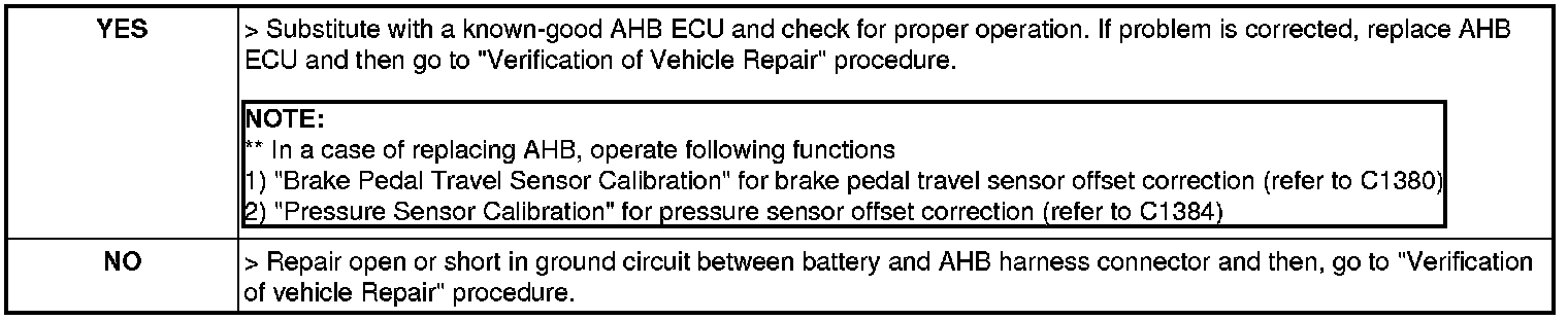 3. Measure resistance between ground terminal of the AHB harness connector and chassis ground.