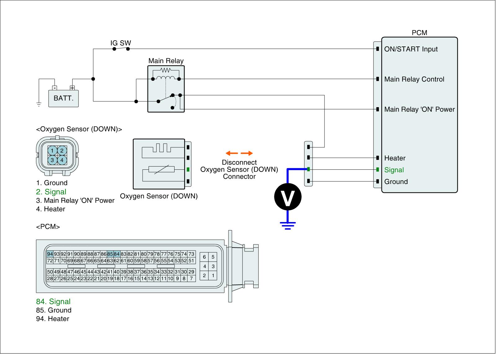 2. Measure voltage between signal terminal of HO2S (B1S2) harness connector and chassis ground.