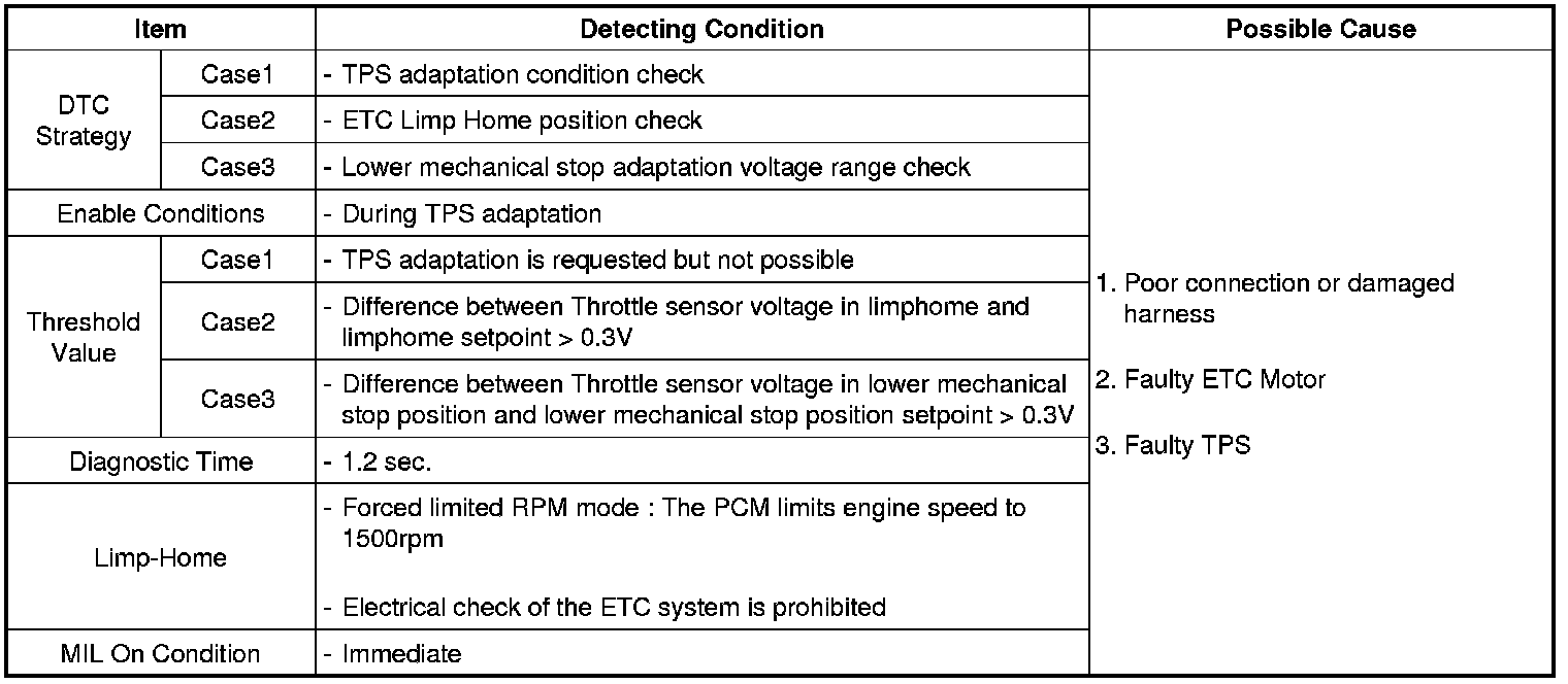PCM sets DTC P0638 if the PCM detects TPS adaptation value exceeds threshold value.