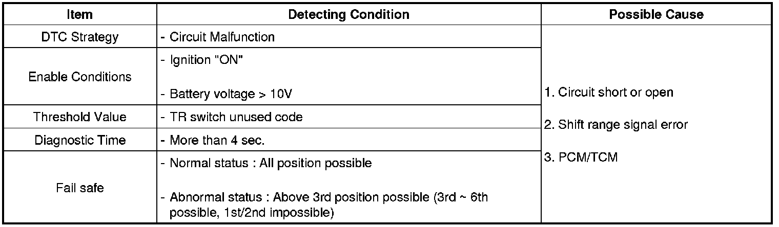 This DTC is set when undefined code is input to PCM/TCM without specific of transmission pattern table.