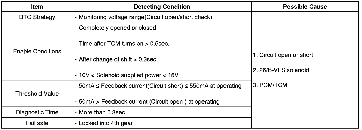 The PCM/TCM control 26/B-VFS solenoid valve by changed current for reducing 26 brake shock. And PCM/TCM charge pressure for reducing shift shock at 1st speed to 2nd speed by pre-Fill control.