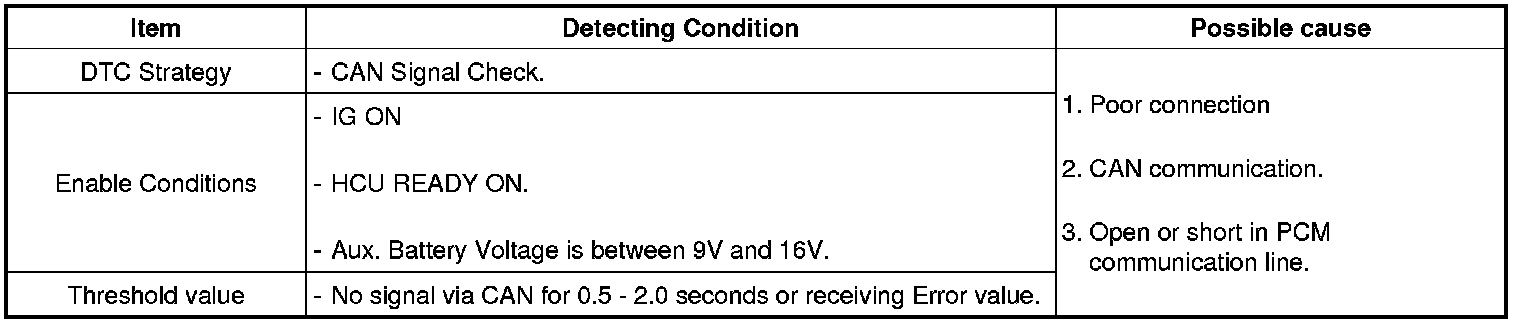 The HCU sets DTC U0101 if No message during 0.5 - 2.0s has not been received through the CAN signal.