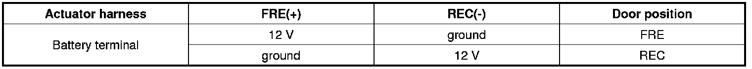 3. Connect (+) terminal of battery to FRE(+) of intake actuator and (-) terminal to REC(-). (Component side)