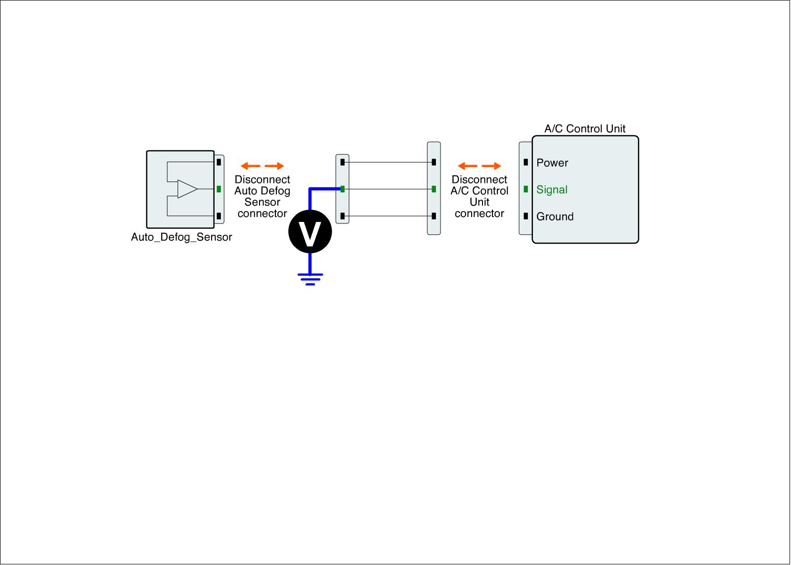 4. Measure voltage between Signal terminal of Auto Defog sensor harness connector and chassis ground.