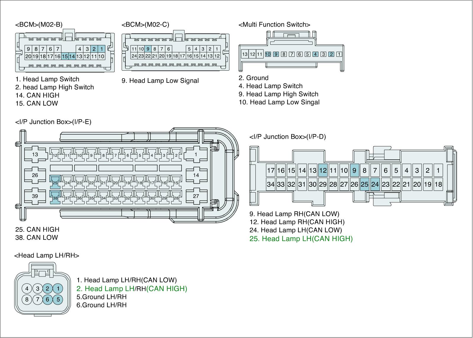 3. Measure resistance between the Left Head lamp High terminal of SJB harness connector and chassis ground.