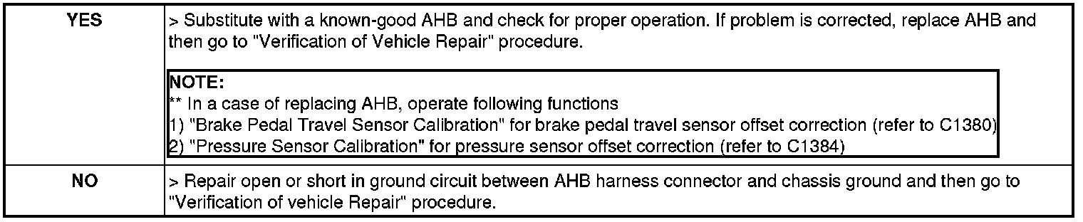 3. Measure resistance between ground terminal of the AHB harness connector and chassis ground.