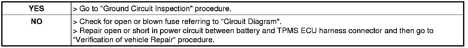 4. Measure voltage between battery power terminal of TPMS ECU harness connector and chassis ground maintaining ENG. RPM at 2,500RPM(idle) over 2 minutes.