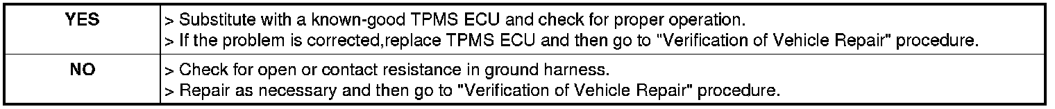 3. Measure resistance between ground terminal of TPMS ECU harness connector and chassis ground.