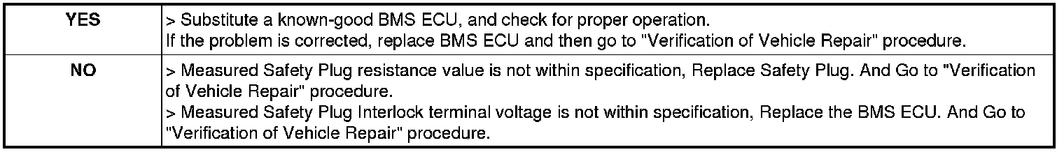 3. Connect an Ohmmeter between high voltage connector terminals and Safety Plug terminal.