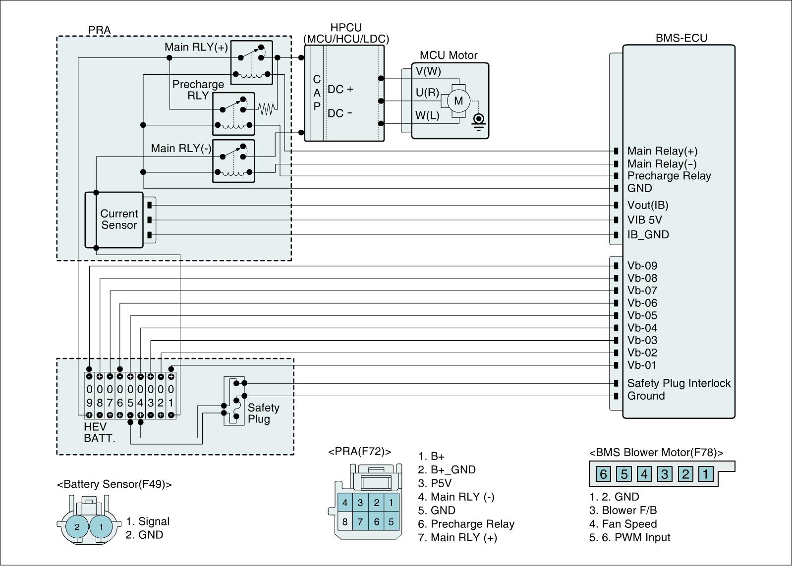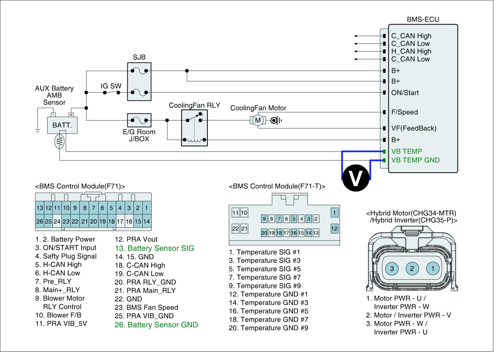 6. With a Voltmeter at the plugged in BMS ECU Connector, check voltage between signal and ground terminals of the Auxiliary Battery Temperature Sensor.
