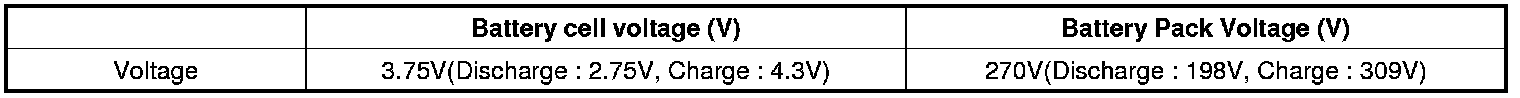 Operating Voltage : for a battery pack : 200 - 310V (for a battery cell: 2.75 - 4.3)