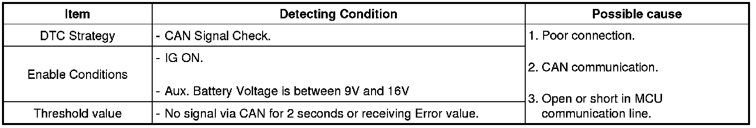 The LDC sets DTC U0110 if No message during 2s has not been received through the CAN signal.