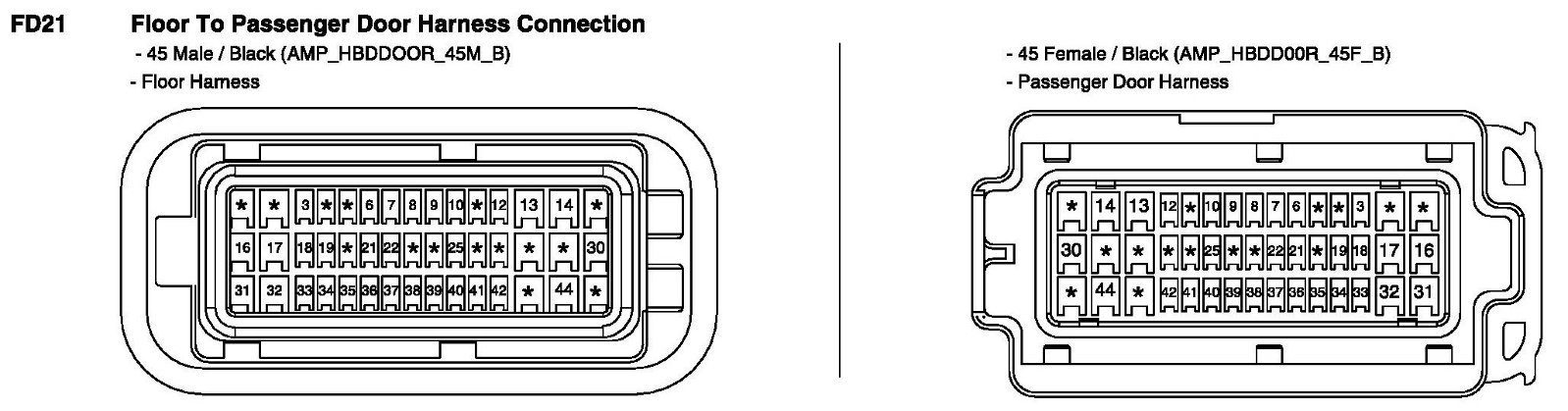 FD21 Floor To Passenger Door Harness Connection: