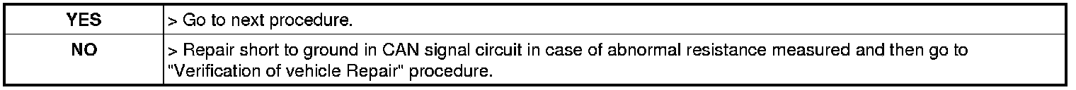 3. Measure resistance between CAN LOW terminal, CAN HIGH terminal of the Yaw rate sensor harness connector and chassis ground.